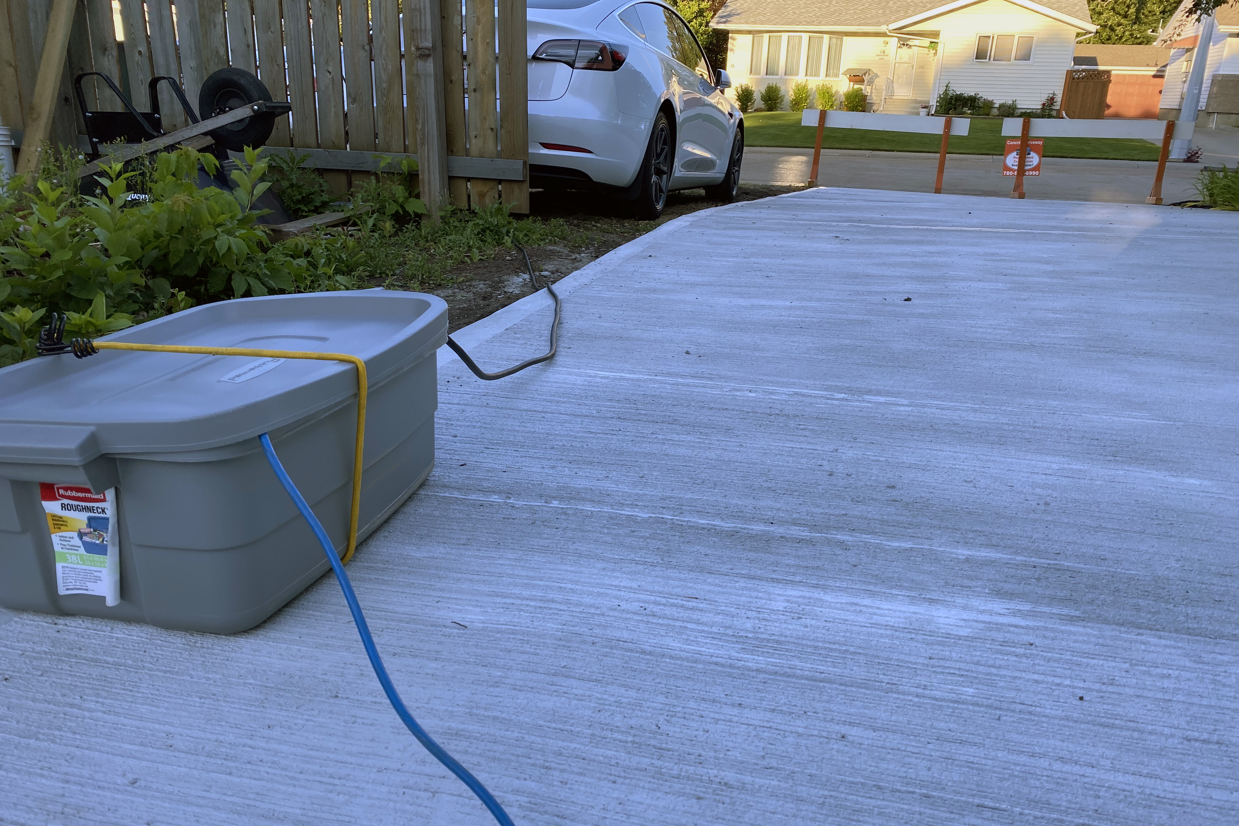 With Astro forced outdoors finding a charge is slightly challenging. I set up this Rubbermaid box to store where the charger meets the extension cord. There isn't any rain in the forecast but at least this will keep is safe if something comes up.